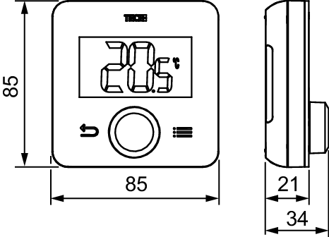 Mål: 85 x 85 x 21 mm