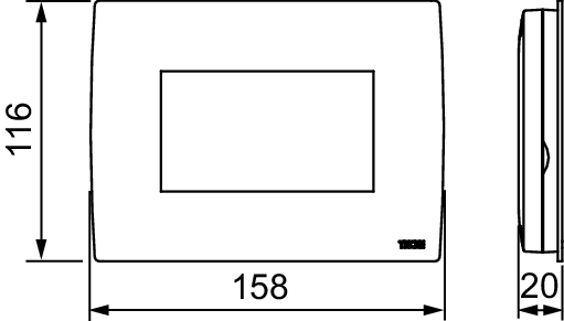 TECEfloor Smart Home sentralenhet Sentral betjeningsenhet med dobbeltrettet radiokommunikasjon (868 MHz) for programmering og styring av TECEfloor Smart Home trådløse systemkomponenter som koblingsboks, romtermostat (analog eller digital), termostathode, vegguttaks-mottaker og receiver.